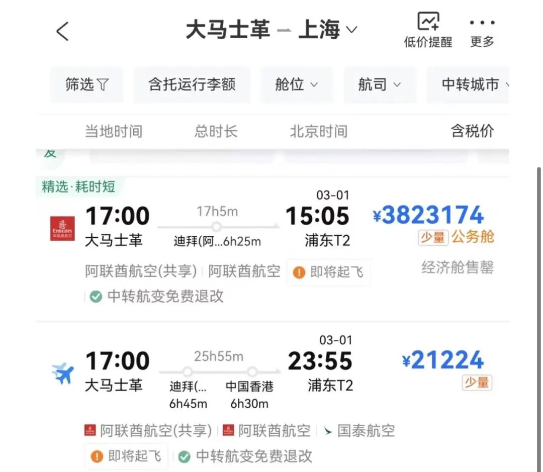 伊以冲突爆发,大马士革飞往上海机票涨至382万元 携程App,当地时间17时从大马士革飞往上海浦东机场的航班,票价涨超382万元。2月28日,以色列对伊朗发动了先发制人的打击,以消除对以色列的威胁,行动代号为“咆哮的狮子”。一名以色列政府官员称,以色列正在准备第一阶段为期四天的密集而强有力的联合进攻。美国军方也预计,将对伊朗进行为期多天的行动。