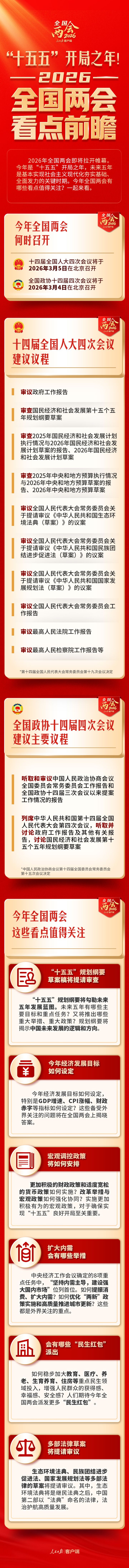 今年是“十五五”开局之年,未来五年是基本实现社会主义现代化夯实基础、全面发力的关键时期。今年全国两会有哪些看点值得关注?