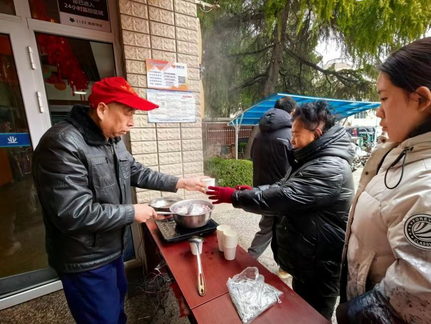 另一边的煮元宵现场同样热火朝天。社区工作人员与物业志愿者们分工协作,烧水、下元宵、搅拌,忙得不亦乐乎。当一碗碗热气腾腾、软糯香甜的元宵出锅,递到居民手中时,大家吃在嘴里,暖在心里。老人们边吃边聊,回忆着儿时的元宵习俗;孩子们捧着小碗,脸上沾满了甜蜜的笑容。一碗碗元宵,不仅暖胃更暖心,拉近了邻里之间的距离,让“家”的味道在社区蔓延。