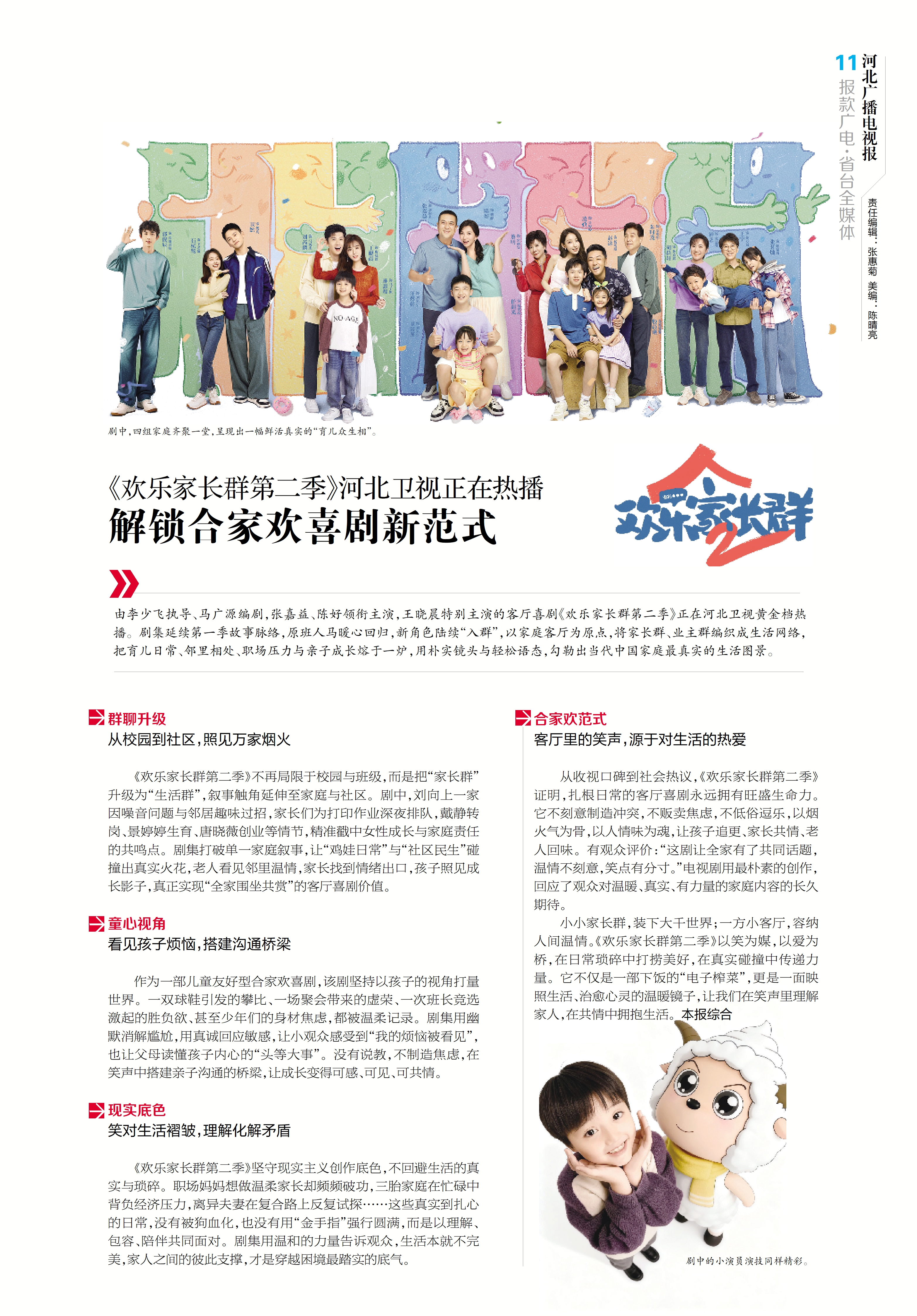 由李少飞执导、马广源编剧,张嘉益、陈好领衔主演,王晓晨特别主演的客厅喜剧《欢乐家长群第二季》正在河北卫视黄金档热播。剧集延续第一季故事脉络,原班人马暖心回归,新角色陆续“入群”,以家庭客厅为原点,将家长群、业主群编织成生活网络,把育儿日常、邻里相处、职场压力与亲子成长熔于一炉,用朴实镜头与轻松语态,勾勒出当代中国家庭最真实的生活图景。