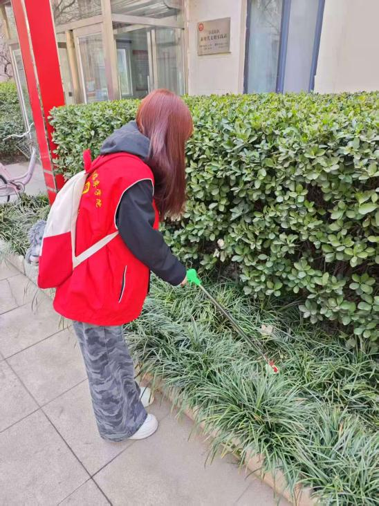 此次志愿服务活动采取分组作业的形式,明确分工、高效推进。一组志愿者负责社区环境卫生清理工作,手持垃圾袋、垃圾夹等工具,对辖区内部小路、绿化带等公共空间的烟头、纸屑、塑料包装袋等生活垃圾进行全面捡拾与清理,有效改善了社区地面环境卫生。