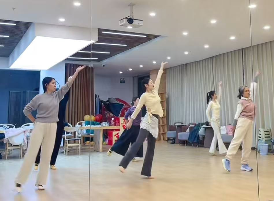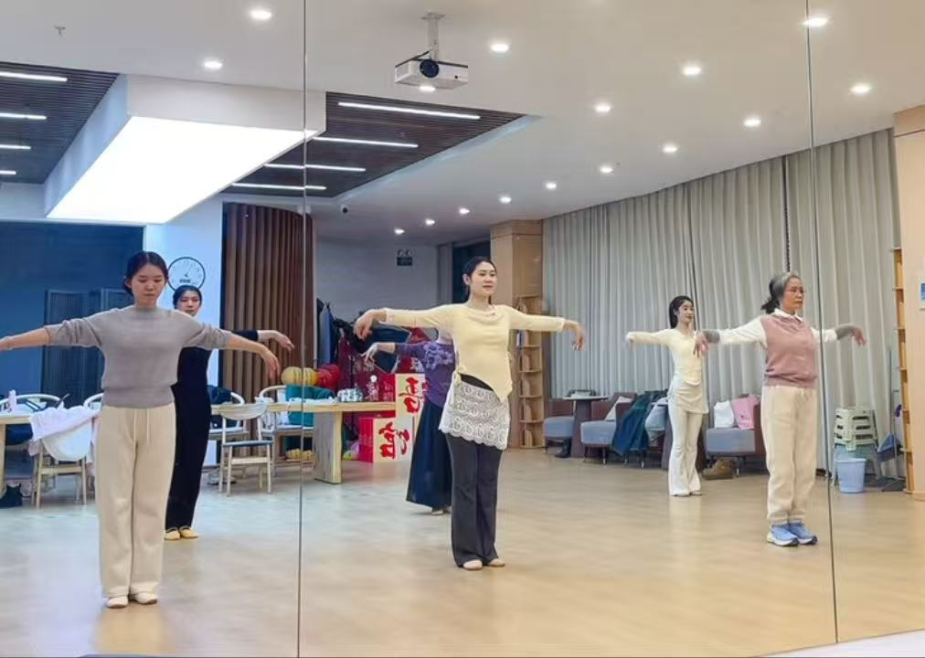 “深呼吸,手臂缓缓抬起,眼神随着手势流动……”课堂上,专业舞蹈教师从最基本的站姿、手位教起,耐心地为学员们讲解古典舞的动作要领。伴随着婉转悠扬的古风音乐,社区舞蹈爱好者们凝神屏气,一招一式间尽显东方韵律之美。从生疏到熟练,从僵硬到舒展,学员们在老师的指导下渐入佳境,仿佛化身为画中仙子,在春风中翩翩起舞。