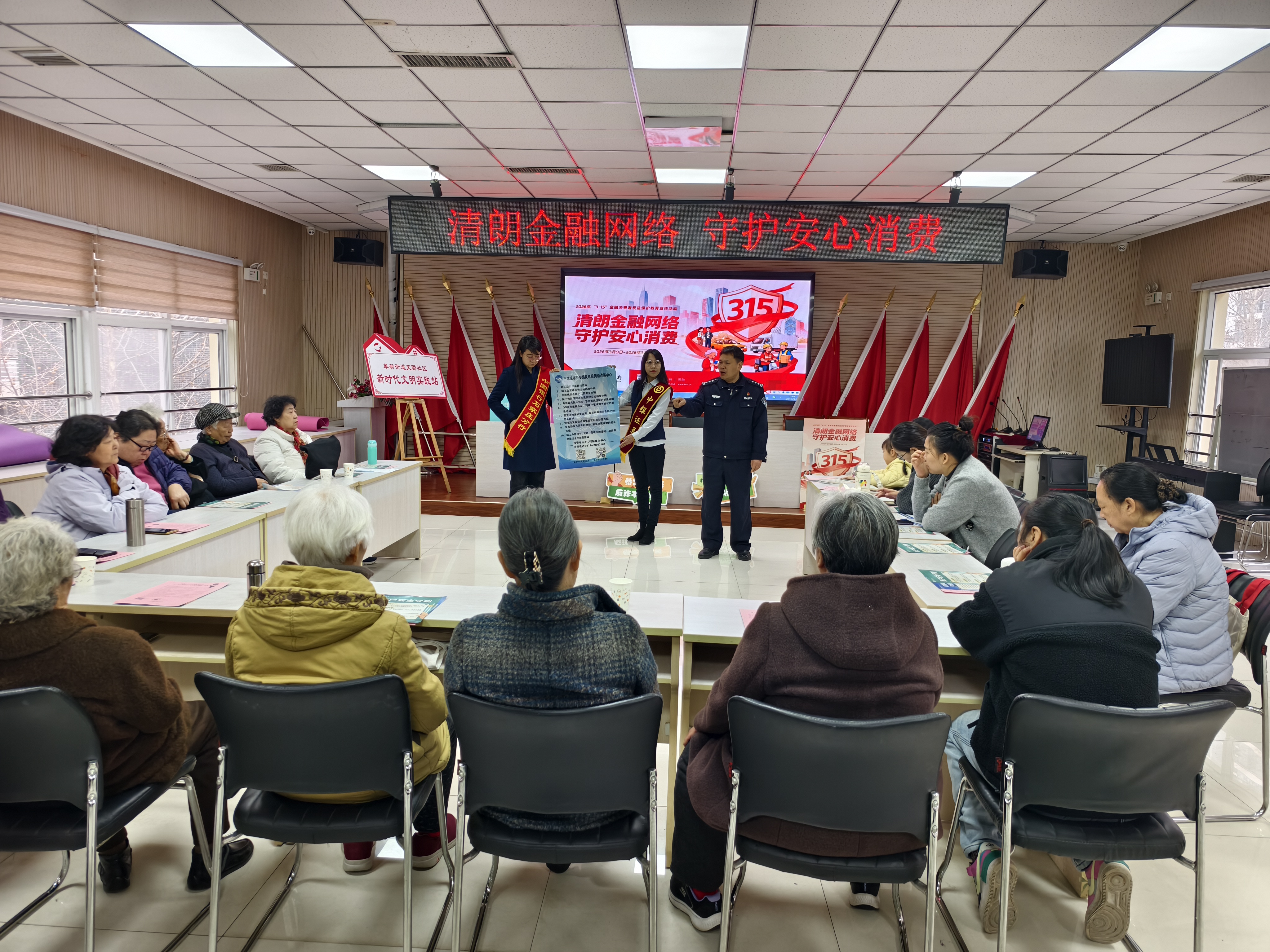 国+社区新媒体报道(河北广电报记者 何静/通讯员 马勉)为进一步增强居民反诈防骗意识,普及金融安全知识,守护群众“钱袋子”,3月13日上午,石家庄市新华区天骄社区联合革新街派出所、中国银行、普爱养老,在社区新时代文明实践站举办“学做理性消费者,金融知识零距离”反诈宣传主题活动。