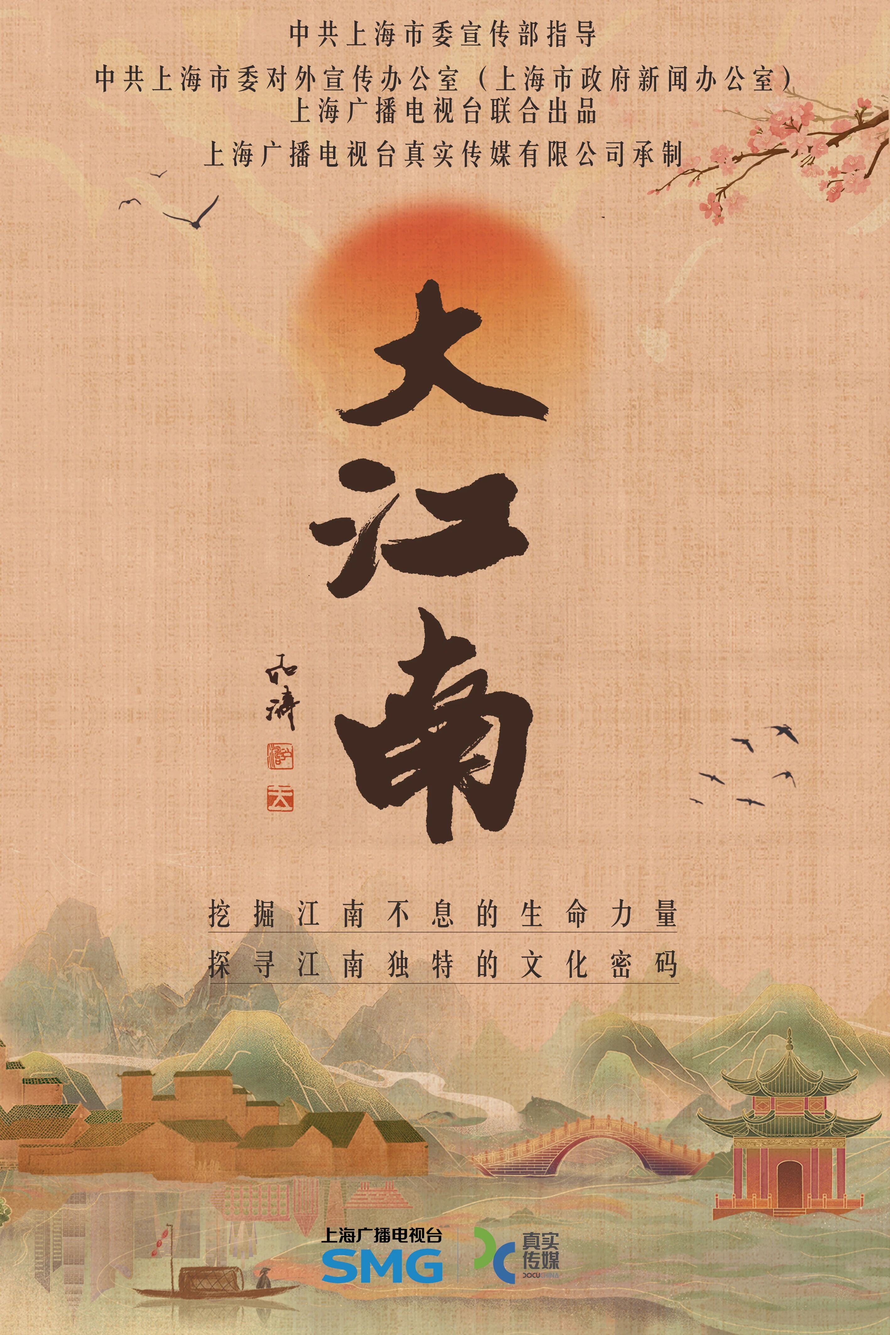 8部、12集、每集55分钟,历时三年拍摄制作的《大江南》视野宏阔。它上溯江南史前时代、下及今朝变化,全景式展现江南文脉的前生今世。生生不息的文化密码、深沉厚重的情感力量、海纳百川的上海城市精神,共同熔铸成当今中国最为开放包容、最具动感和生命力的热土。