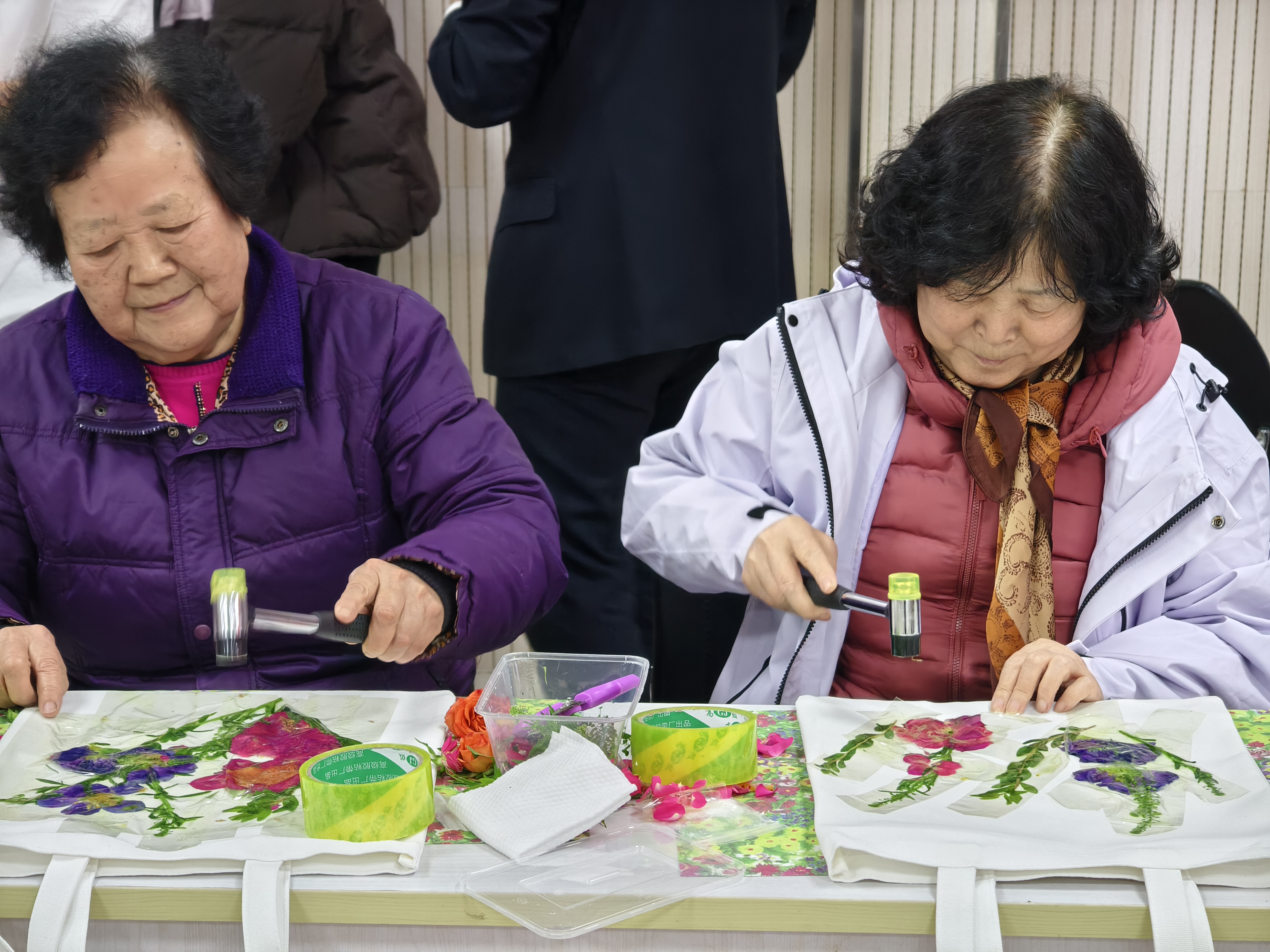 在趣味互动环节,居民们参与花朵图案帆布包手工拓印,在轻松温馨的手工创作中增进交流、放松身心,让宣传活动更具温度与趣味性。现场还设置金融反诈咨询台,银行工作人员、社区民警与志愿者共同为居民提供一对一答疑服务,细致解答账户安全、个人信息保护、银行卡使用、理财风险防范等问题,并发放宣传资料,切实提升居民风险识别与自我保护能力。