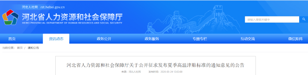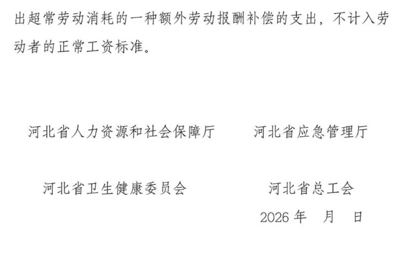 为维护好劳动者高温作业劳动保障权益,促进劳动者身心健康,构建和谐劳动关系,河北省人力资源和社会保障厅、河北省应急管理厅、河北省卫生健康委员会、河北省总工会拟制了《关于发布夏季高温津贴标准的通知》,现面向社会公开征求意见。