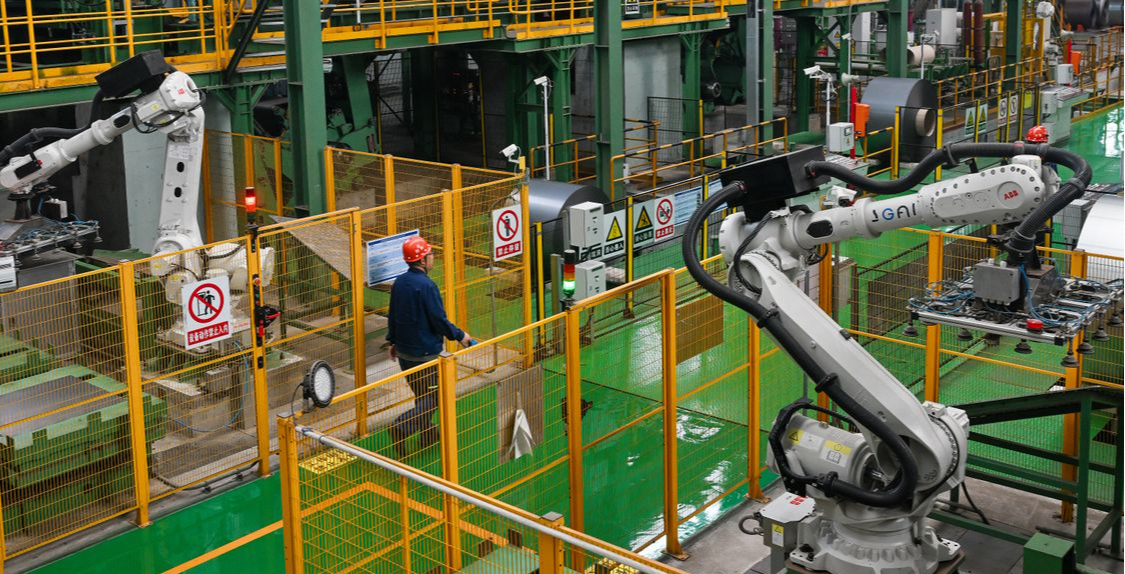 首钢智新电磁材料(迁安)股份有限公司,机器人在生产线上作业。