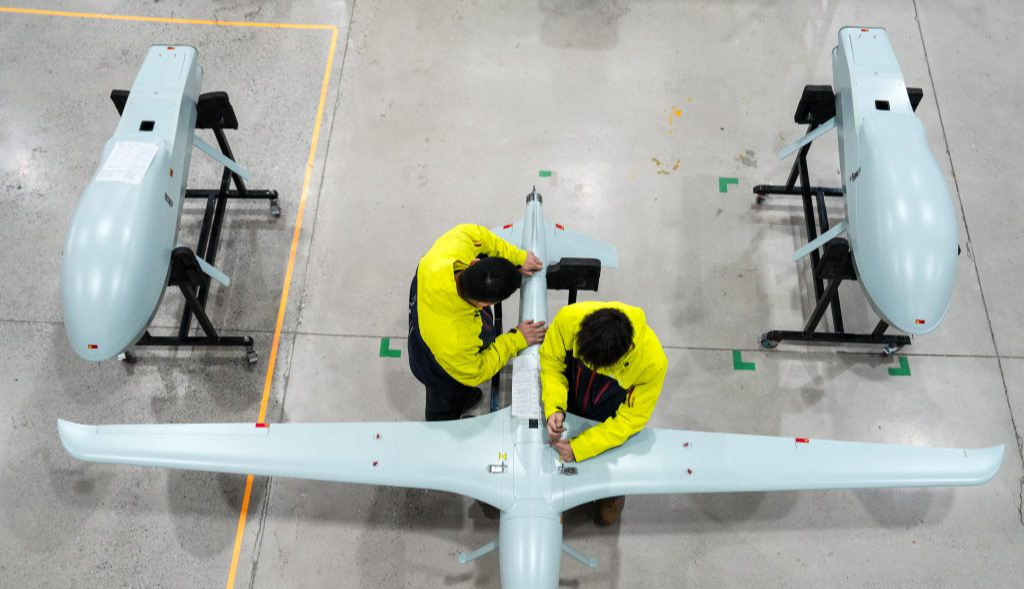 位于保定高新区的天峋航空科技(保定)有限公司,员工在组装飞行器。