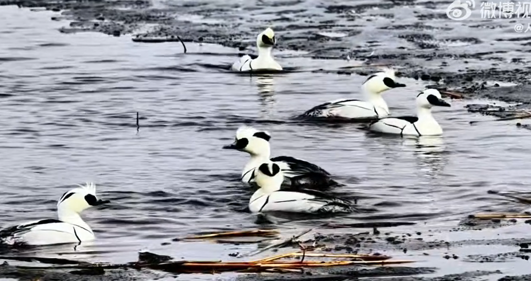 熊猫鸭现身元上都遗址 近日,摄影爱好者在世界文化遗产元上都遗址,拍摄到国家二级保护动物斑头秋沙鸭,俗称“熊猫鸭”。据介绍,这是该珍稀鸟类首次在正蓝旗现身。“熊猫鸭”因雄鸟眼周黑斑形似熊猫而得名,对栖息环境的水质、空气质量要求极高,素有“生态检验师”之称,是生态环境优劣的重要指示物种。