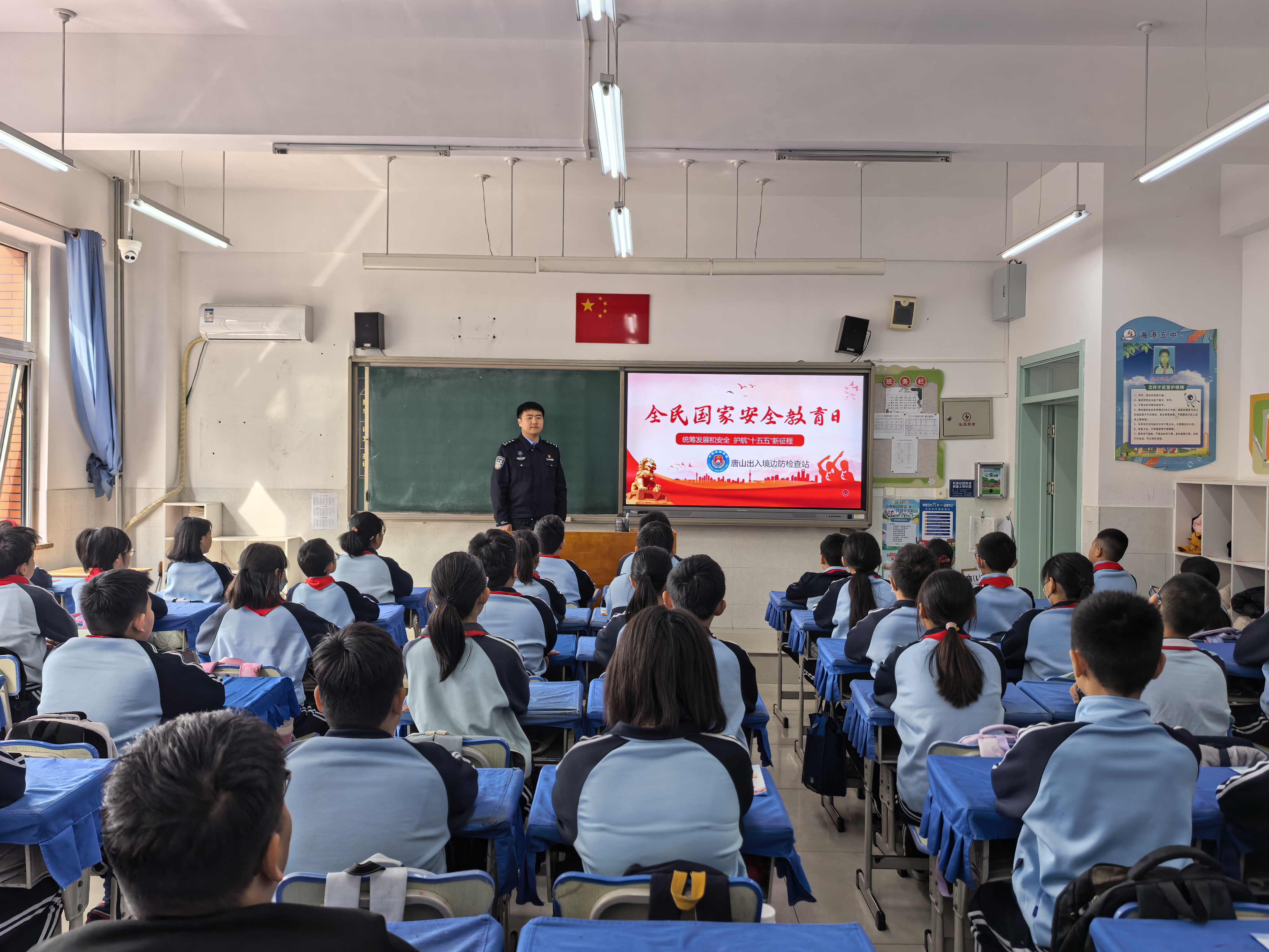 系列宣传的收官环节,该站民警以“法治副校长”身份走进唐山海港经济开发区第五中学。课堂上,民警结合校园真实案例,用通俗语言讲解与青少年息息相关的网络安全、数据安全知识,解读校园欺凌、网络造谣传谣的法律边界。互动问答环节,刚讲完境外信息渗透的常见套路,就有学生举手抢答:“陌生链接不能点,不明信息不能转,我们也能当国家安全小卫士!”稚嫩却坚定的发言引得全场掌声,让“国家安全人人有责”的理念在孩子们心中扎下了根。