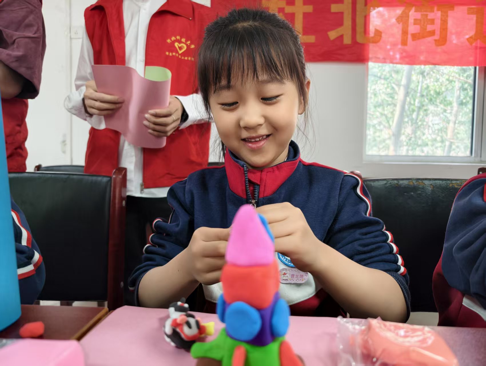 理论学习后,孩子们在志愿者与社区工作人员指导下,开展航天主题手工创作。大家动手拼装火箭模型、绘制宇宙星空画卷,将航天梦想融入指尖创作。活动现场气氛活跃,孩子们踊跃参与、积极提问,在实践中巩固航天知识,感受科学探索的快乐。