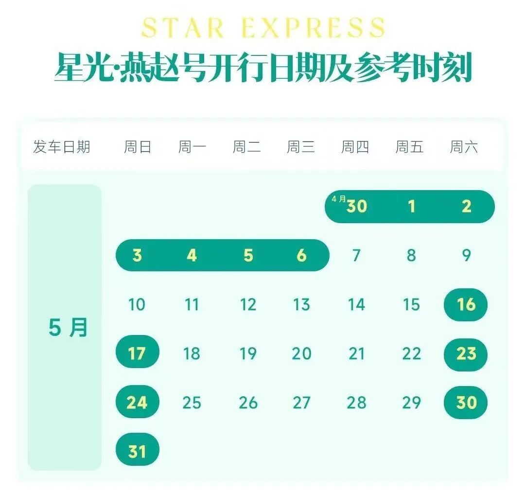 4月30日开行!北京→吴桥杂技旅游专列要来了 “星光燕赵号·吴桥杂技情”旅游专列将于4月30日开行。4月30日—5月6日,每日开行一趟。专列自北京站至吴桥站08:37发车,12:40抵达;吴桥站至北京站17:00发车,20:59抵达。