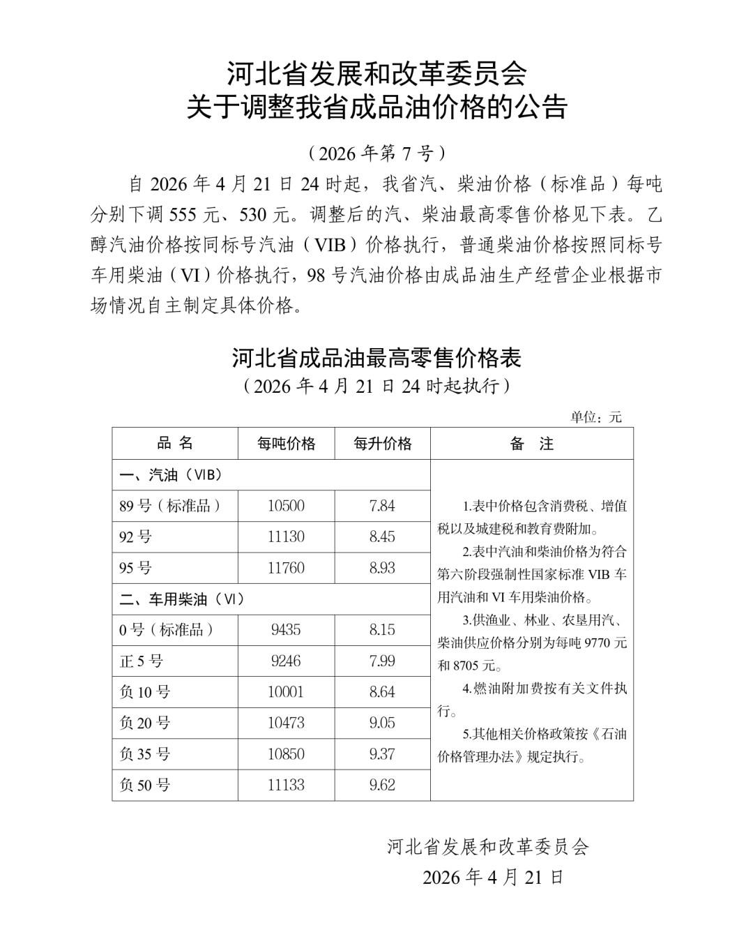 最新!河北油价调整公告
